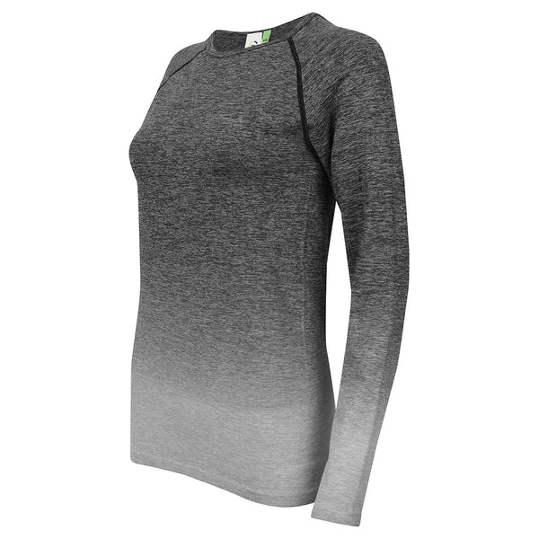 Tombo Women's Dark Grey/ Light Grey Marl Seamless Fade Out Long Sleeve Top