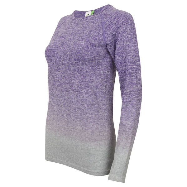 Tombo Women's Purple/ Light Grey Marl Seamless Fade Out Long Sleeve Top