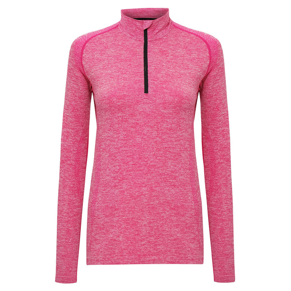 TriDri Women's Pink Seamless 3D Fit Multi-Sport Performance Zip Top