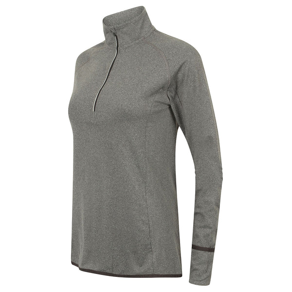 Tombo Women's Grey Marl Long Sleeve 1/4 Zip Performance Top