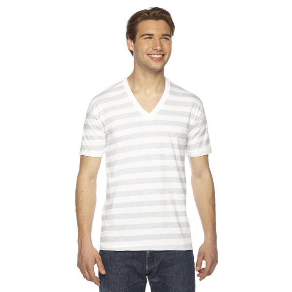 American Apparel Unisex Ash White Stripe Fine Jersey Short-Sleeve V-Neck