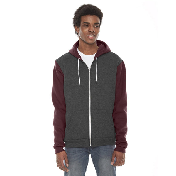 American Apparel Unisex Dk Hth Gry/Trffl Flex Fleece Zip Hoodie