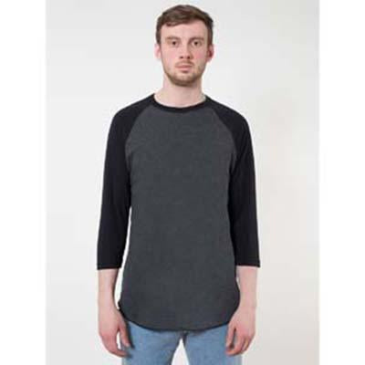 American Apparel Unisex Hthr Black/Black Poly-Cotton Baseball Raglan Tee