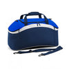 Athletes simply love the BagBase French Navy/Bright Royal/White Teamwear Holdall. That's why it's the perfect bag on which to add your team's custom logo or design on the exterior. A sleek and simple design is paired with extra features, which make this bag highly desirable and easy to use. With a 54 liter capacity, the large interior pocket is paired with zippered end pockets for convenient organization. The internal baseboard and feet ensure it always maintains its shape, while the webbed shoulder strap and padded carry handle give you multiple ways to take it with you. Designed for anyone with an active lifestyle, this bag will always make your brand look good.