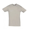 Upgrade your t-shirt collection with the custom printed SOL'S Men's Light Grey Regent T-Shirt. Everyone needs a great branded tee, they form the basis of any outfit and are a cost-effective way to promote your company logo on the streets. This one is made from 100% ringspun semi-combed cotton, so it feels great on the skin and is naturally breathable. It is simply styled for broad appeal, and it has a ribbed collar and taped neck. This t-shirt has an athletic fit thanks to the tubular body, and it is also designed to last as it has been made with twin needle stitching. It weighs 150 gsm, and there's a huge range of colours to pick from. Try it out for your next giveaway or use for promo merch.