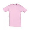 Upgrade your t-shirt collection with the custom printed SOL'S Men's Medium Pink Regent T-Shirt. Everyone needs a great branded tee, they form the basis of any outfit and are a cost-effective way to promote your company logo on the streets. This one is made from 100% ringspun semi-combed cotton, so it feels great on the skin and is naturally breathable. It is simply styled for broad appeal, and it has a ribbed collar and taped neck. This t-shirt has an athletic fit thanks to the tubular body, and it is also designed to last as it has been made with twin needle stitching. It weighs 150 gsm, and there's a huge range of colours to pick from. Try it out for your next giveaway or use for promo merch.