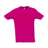 The branded SOL'S Men's Fuchsia Imperial Heavy T-Shirt is a simple and effective tee which can be used to promote your company logo. Comfort is everything when it comes to promo tees, and this tee is sure to fit the bill as it is made from 100% ringspun semi-combed cotton which can be printed with custom logo. It weighs 190 gsm and has a ribbed collar, taped neck and tubular body for a modern aesthetic and broad appeal. The wearer is sure to stand out in a crowd when you opt for bright and neon colours, or you can pick the classics. Have it logoed today, it's the ideal low-cost giveaway item for trade shows and can also be used for promo merch. The heavier weight makes it perfect for cooler seasons.