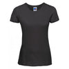 Featuring a longer length than many other standard shirts and made using breathable cotton, the Russell Women's Black Lightweight Slim T-Shirt is effortlessly versatile. Complete with a narrow ribbed collar, flattering side seams and a taped neck, this shirt offers more than enough space for you to add your very own custom logo with ease. So, if you're looking to create a bespoke range of comfortable t-shirts for your workforce or promotional team, this customisable Russell option is the ideal choice.