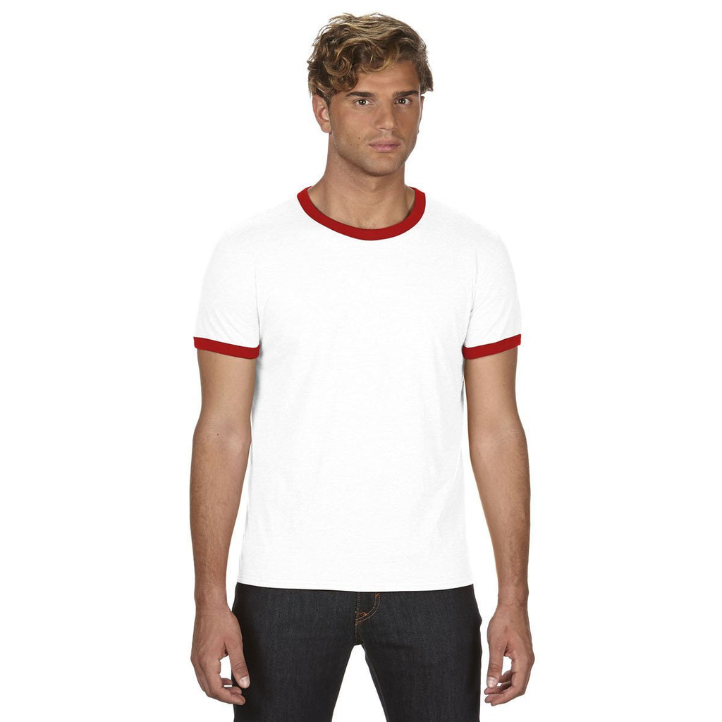 Contrast binding at the neck and sleeves put the Anvil Men's White/Red Lightweight Ringer T-Shirt into a fashion class of its own. Designed with super soft 100% combed ring spun cotton, the lightweight t-shirt includes a double-needle hem that resists rips and tears. The tubular construction and semi-fitted appearance enhance the aesthetic appeal of the stylish t-shirt. The t-shirt makes the ideal corporate gift to thank loyal customers for their business and dedicated employees for all of their hard work. Just make sure to add a custom logo to create publicity for your company everywhere your employees and customers go.