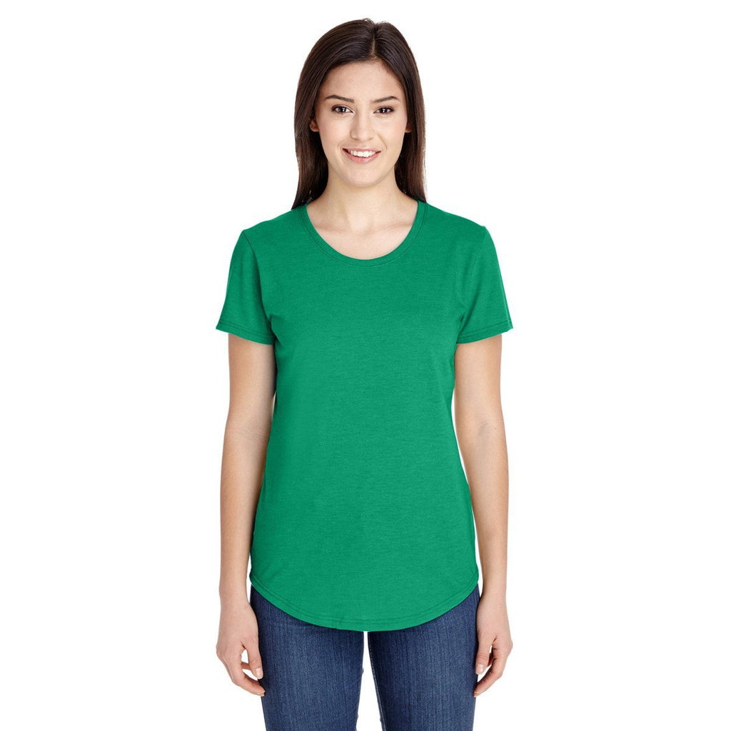 Three fabrics combine to make the Anvil Women's Heather Green Triblend Scoop Neck T-Shirt a hit at work and after hours. Ring spun cotton gives the scoop neck t-shirt its softness, while rayon and polyester take care of long lasting durability. The double-needle sleeve and curved bottom hem add unique style elements that put the t-shirt at the top of the corporate apparel wish list. Attach you corporate logo to increase awareness of your brand. Logo'd corporate apparel provides companies with a cost effective way to advertise at industry seminars and conferences.