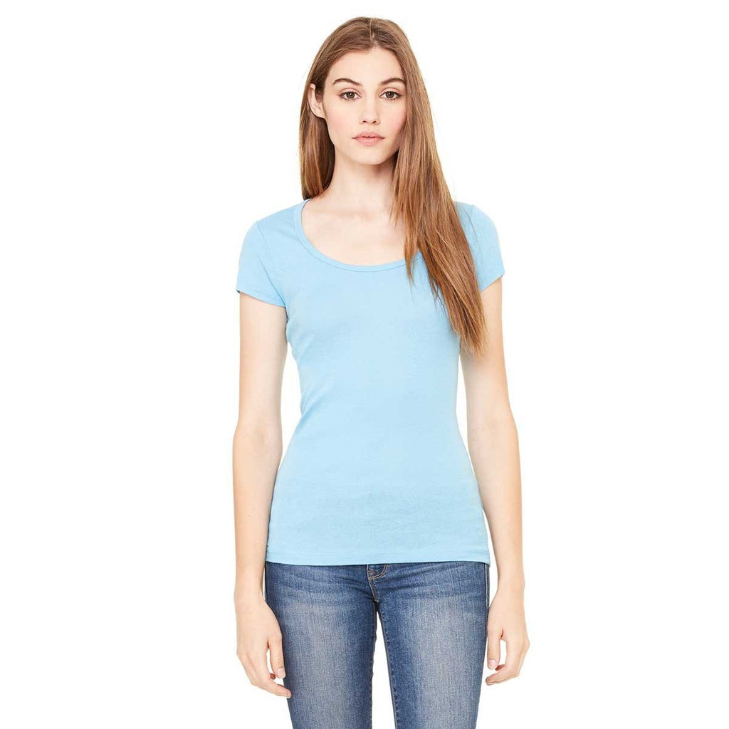 Scoop neck t-shirts keep you cool around the neck area, while enhancing the aesthetic appeal of your outfit. The Bella + Canvas Women's Ocean Blue Sheer Mini Rib Short-Sleeve Scoop Neck T-Shirt exceeds fashion expectation by including a little spandex to improve your mobility. Enjoy the side seam stitching that keeps the t-shirt together longer than the lifespans of other t-shirts. Moisture wicking technology works in concert with the scoop neck to ensure maximum comfort. Wear the t-shirt as a first or only layer, depending on your company dress code. This t-shirt makes the perfect company gift to hand out at industry conventions.