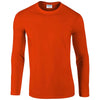 Offering a stylish, warmer alternative to a classic short sleeve t-shirt, the Gildan Men's Orange SoftStyle Long Sleeve T-Shirt is effortlessly versatile. Featuring a ribbed collar and a taped neck and shoulders for added structure, the super soft material used to craft this shirt is guaranteed to keep the wearer feeling comfortable all day long. Also offering plenty of free space for you to add your very own custom logo with ease, this Gildan long sleeve shirt is suitable for a wide variety of occasions - and will represent your company or brand with premium style.
