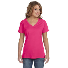 Anvil Women's Hot Pink Ringspun Featherweight V-Neck T-Shirt