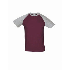SOL'S Men's Burgundy/Grey Marl Funky Contrast Baseball T-Shirt