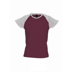 SOL'S Women's Burgundy/Grey Marl Milky Contrast Baseball T-Shirt
