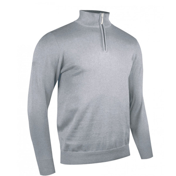Glenmuir Men's Light Grey Marl Zip Neck Cotton Sweater
