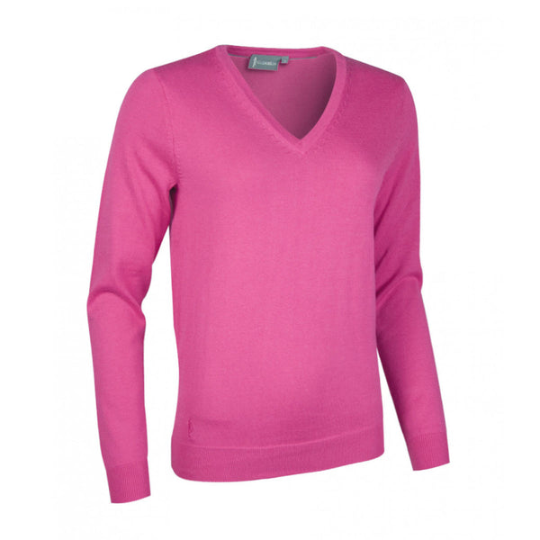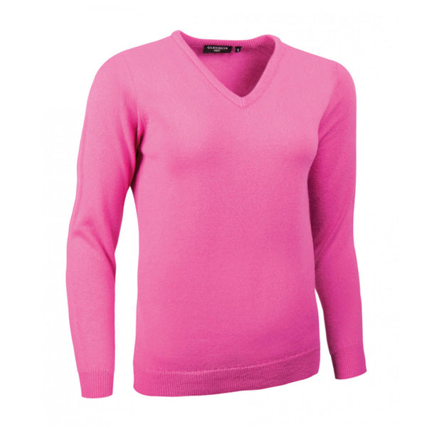 Glenmuir Women's Hot Pink V Neck Lambswool Sweater