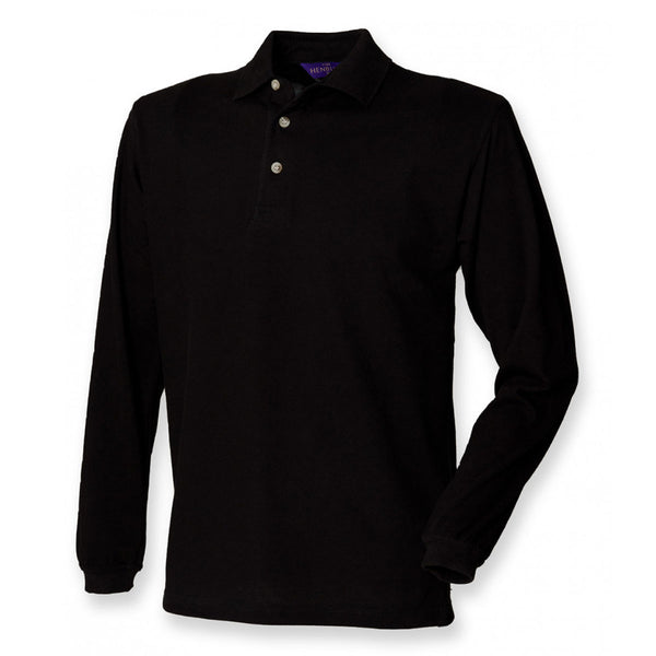 Henbury Men's Black Long Sleeve Cotton Pique Polo Shirt