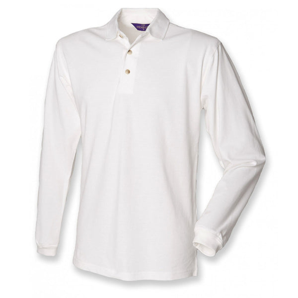 Henbury Men's White Long Sleeve Cotton Pique Polo Shirt