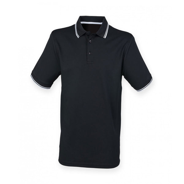 Henbury Men's Black/White Coolplus Tipped Polo Shirt