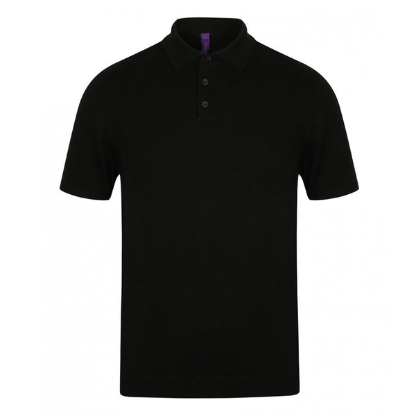 Henbury Men's Black Knitted Short Sleeve Polo Shirt