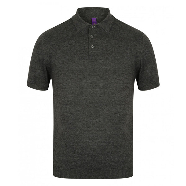 Henbury Men's Grey Mart Knitted Short Sleeve Polo Shirt
