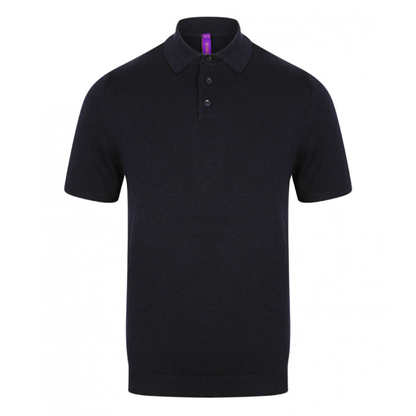 Henbury Men's Navy Knitted Short Sleeve Polo Shirt