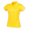 With moisture wicking Coolplus performance fabric, the custom logoed Henbury Women's Yellow Coolplus Wicking Pique Polo Shirt is a great choice for staff uniforms and giveaways. This ladies polo is elegantly constructed from easy care polyester fabric which can be embroidered with your corporate logo. It features a taped neck, flat knit collar and two self colour button placket for a polished appearance. Other details include side vents, shaped side seams, cuffed sleeves, twin needle stitching and a locker patch. Tuck it in and wear it during sports, or wear it to work on the hot summer days. Decorate with custom logo today, this polo is sure to get results.