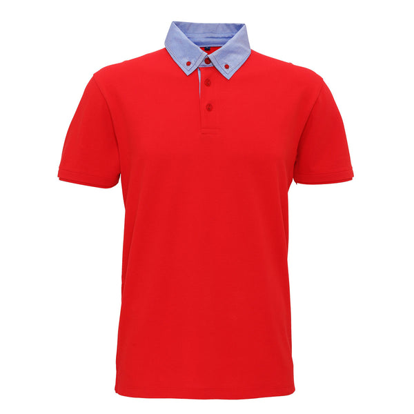 Asquith & Fox Men's Red/Denim Chambray Button-Down Collar Polo