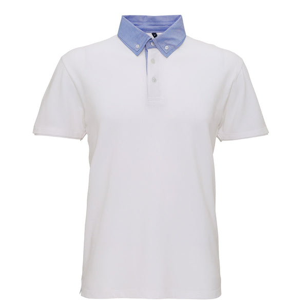Asquith & Fox Men's White/Denim Chambray Button-Down Collar Polo