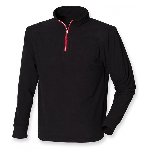Finden + Hales Men's Black/Red Zip Neck Piped Micro Fleece