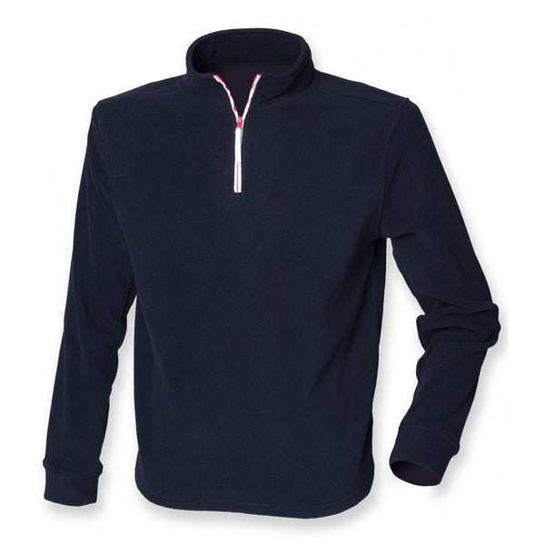 Finden + Hales Men's Navy/White Zip Neck Piped Micro Fleece