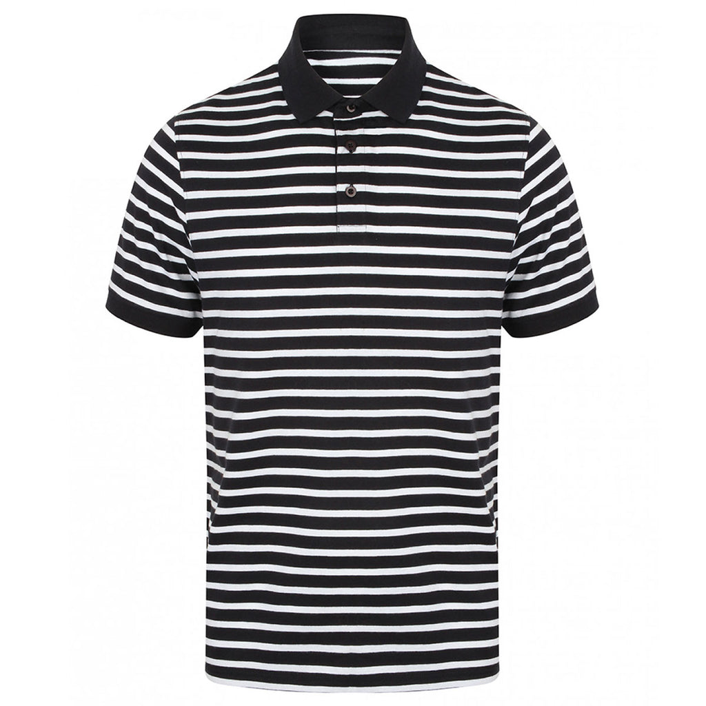 With a modern design, Front Row Men's Navy/White Striped Jersey Polo Shirt provides your team with an easy way to represent your brand. Adding your custom logo or design to the front of this contemporary polo ensures that everyone representing your brand will look laid back yet professional. Along with a highly attractive fit, it features exceptional design elements like a flat knit collar and herringbone taped side vents. The contrasting collar and cuffs also add additional style, giving this polo a distinct and accessible look that will show off your brand beautifully.