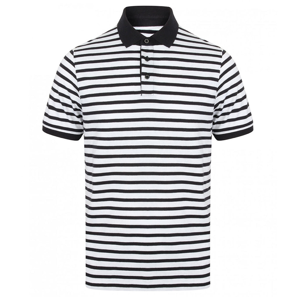 With a modern design, Front Row Men's White/Navy Striped Jersey Polo Shirt provides your team with an easy way to represent your brand. Adding your custom logo or design to the front of this contemporary polo ensures that everyone representing your brand will look laid back yet professional. Along with a highly attractive fit, it features exceptional design elements like a flat knit collar and herringbone taped side vents. The contrasting collar and cuffs also add additional style, giving this polo a distinct and accessible look that will show off your brand beautifully.