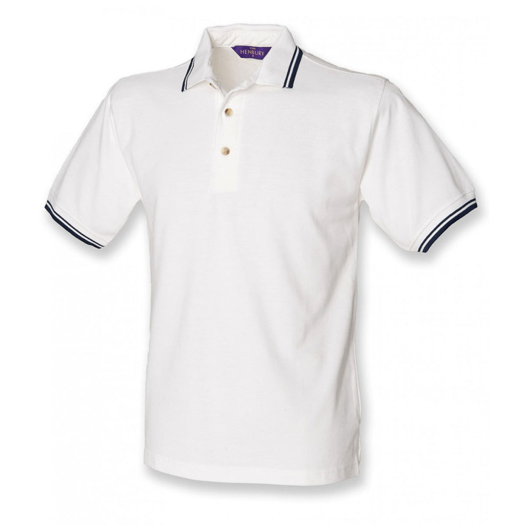 Promote your company logo in style with the embroidered Henbury Men's White/Navy Contrast Double Tipped Cotton Pique Polo Shirt. This shirt can be customised with your brand logo, and it is made from 100% cotton to ensure comfort and breathability all year round. Stand out from the rest with the contrast double tips on the collar and cuff adding visual interest and helping to draw attention to your custom logo. The three horn button placket gives you the option to leave them undone for the hot summer days, whilst the stand-up collar can be used for sun protection. Whether worn at work or for play, this men's polo is ideal for your next promotional campaign.