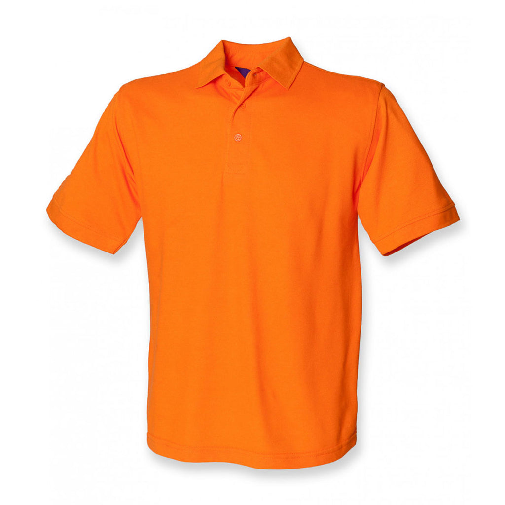 The custom logoed Henbury Men's Orange Heavy Poly/Cotton Pique Polo Shirt is made from a mix of polyester and cotton, making it ideal for activewear. With a smart and casual appearance, this polo can be embroidered with your company logo to enhance brand awareness. Moisture wicking and breathability are ensured by the blended fabric, whilst stand up collar and taped neck give it a traditional appearance. With three self colour button placket, you can wear it your way depending upon the situation. Ideal for staff uniforms as well as casual wear, this polo is designed to last with twin needle stitching and rib cuff sleeves enhancing durability. Start your promotional campaign today.