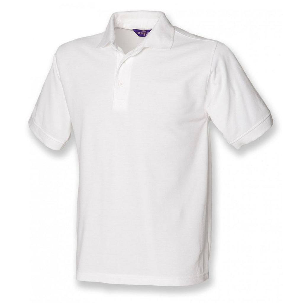 The custom logoed Henbury Men's White Heavy Poly/Cotton Pique Polo Shirt is made from a mix of polyester and cotton, making it ideal for activewear. With a smart and casual appearance, this polo can be embroidered with your company logo to enhance brand awareness. Moisture wicking and breathability are ensured by the blended fabric, whilst stand up collar and taped neck give it a traditional appearance. With three self colour button placket, you can wear it your way depending upon the situation. Ideal for staff uniforms as well as casual wear, this polo is designed to last with twin needle stitching and rib cuff sleeves enhancing durability. Start your promotional campaign today.