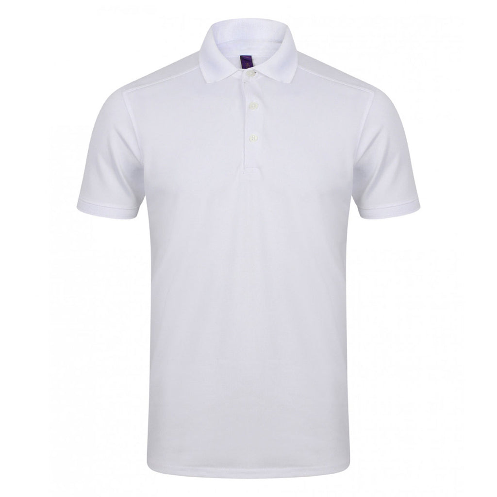 The Henbury Men's White Stretch Microfine Pique Polo Shirt is ready to be branded with your custom logo, and is an exceptionally comfortable polo for everyday wear. Constructed from a blend of polyester and elastane, this logoed polo has a smooth feel and is ideal for wearing during physical activity. The modern fit is right on trend, whilst moisture wicking fabric will keep you dry. Smart and practical, this polo is equipped with a flat knit collar and a three self colour button placket to increase wearability during various situations. There is also a front and back shoulder yoke detail, as well as fitted sleeves with ribbed cuffs. Add your company logo today!