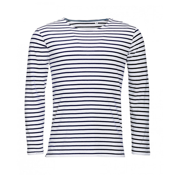 SOL'S Men's White/Navy Marine Long Sleeve Stripe T-Shirt