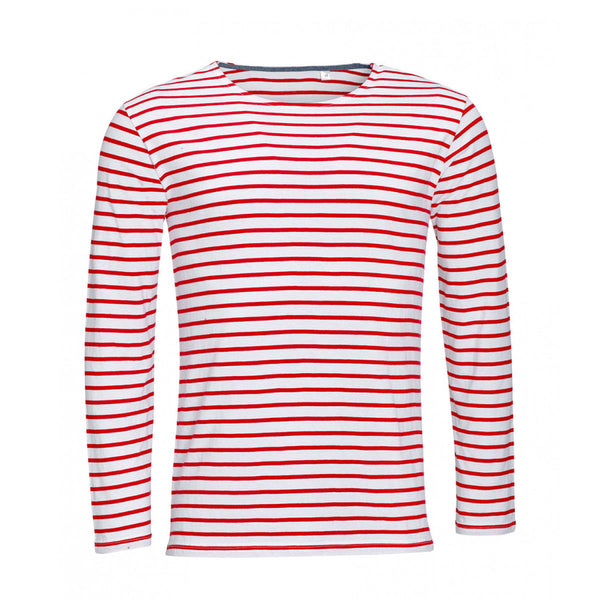 SOL'S Men's White/Red Marine Long Sleeve Stripe T-Shirt