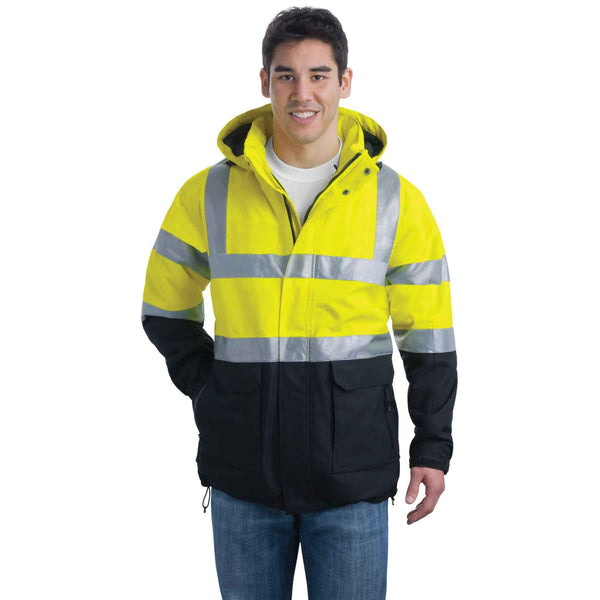 Port Authority Men's Safety Yellow/ Black/Reflective ANSI 107 Class 3 Safety Heavyweight Parka