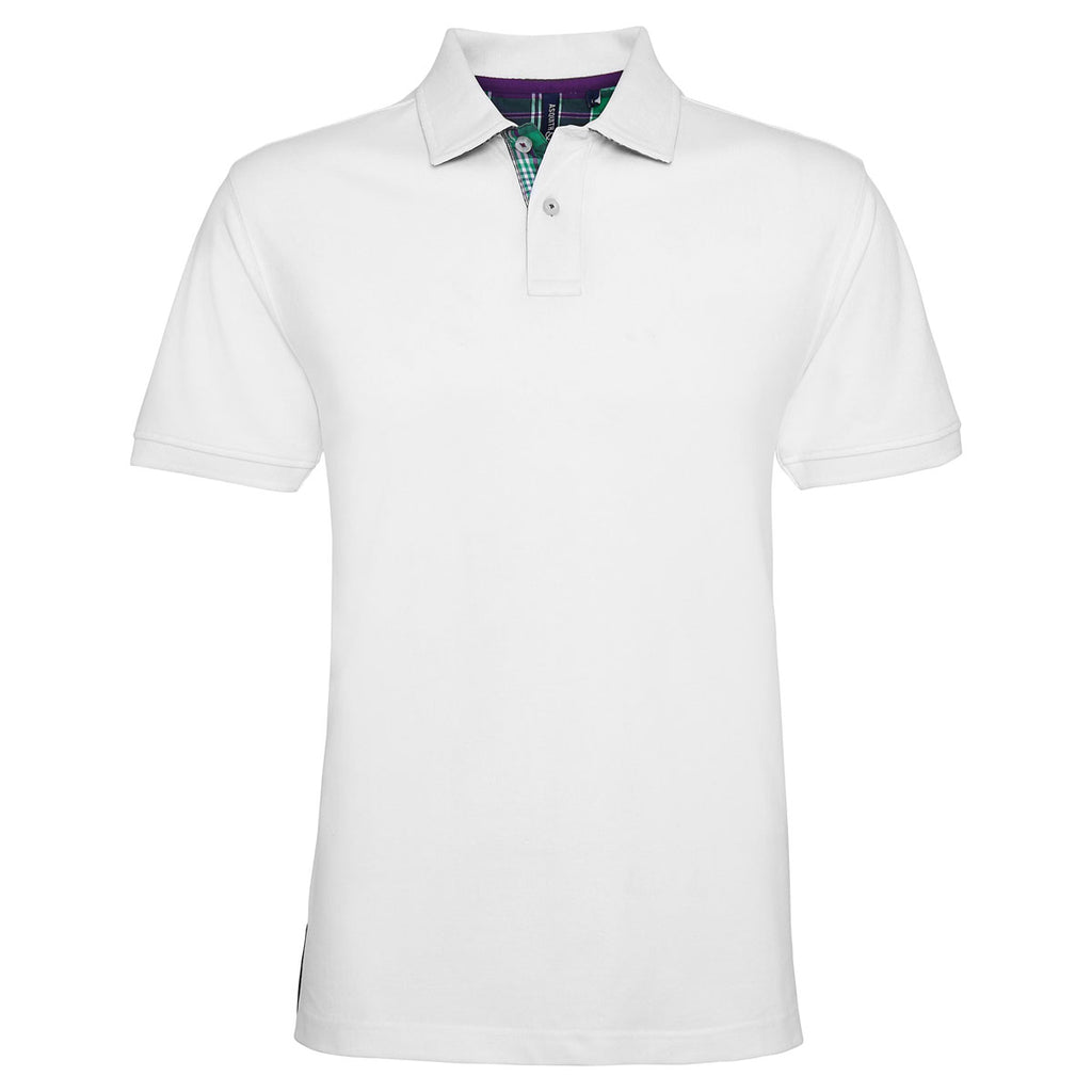 The Asquith & Fox Men's White Check Trim Polo takes an already stylish wardrobe staple and enhances it with an eye-catching check lining trim. Available in several colours, it offers ample room for custom decoration with a team or company logo, making it an ideal choice for employee uniforms, special event wear, and corporate gifts. Like most polos, it easily pairs with casual and business casual outfits, taking wearers from the office to the weekend and beyond. Ribbed knit collar and cuffs plus side vents give the shirt a comfortable fit.