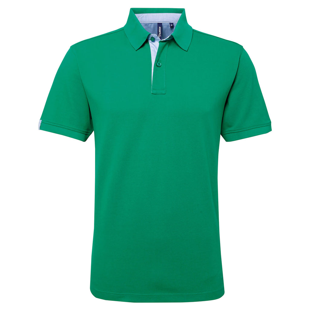 When your brand deserves a stylish treatment, choose the Asquith & Fox Men's Kelly/Sky Cotton Polo with Oxford Fabric Insert. Unlike the traditional polo, this shirt features an Oxford fabric insert around the collar, placket, and back of the neck. The insert is a truly eye-catching element that will not only help draw attention to your company logo, but will also leave your employees, team members, and clients looking sharp. It is a fashionable choice that can easily take wearers from the office to the weekend and beyond.