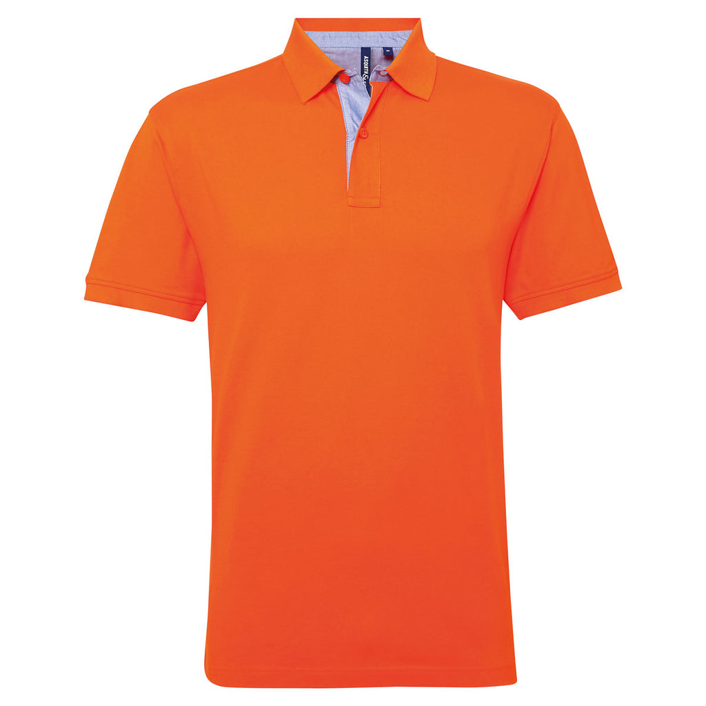 When your brand deserves a stylish treatment, choose the Asquith & Fox Men's Orange/Cornflower Cotton Polo with Oxford Fabric Insert. Unlike the traditional polo, this shirt features an Oxford fabric insert around the collar, placket, and back of the neck. The insert is a truly eye-catching element that will not only help draw attention to your company logo, but will also leave your employees, team members, and clients looking sharp. It is a fashionable choice that can easily take wearers from the office to the weekend and beyond.