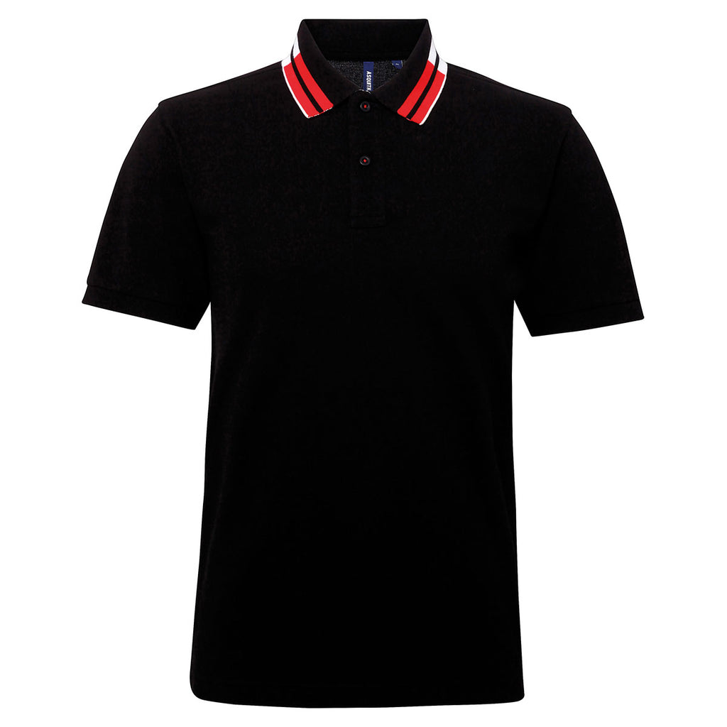 Your employees and clients can't help but look sharp when wearing the Asquith & Fox Men's Black/White/Red Two Colour Tipped Polo with your company logo added. Whether you incorporate it into your golf resort, hotel, restaurant, or retail store's work uniform or you customize it for a special event or corporate gift, your brand is sure to be noticed thanks to the eye-catching style of the double stripe collar. Wearers will appreciate how they can easily pair the shirt with everything from jeans to chinos and how easily the shirt goes from everyday settings to the office.