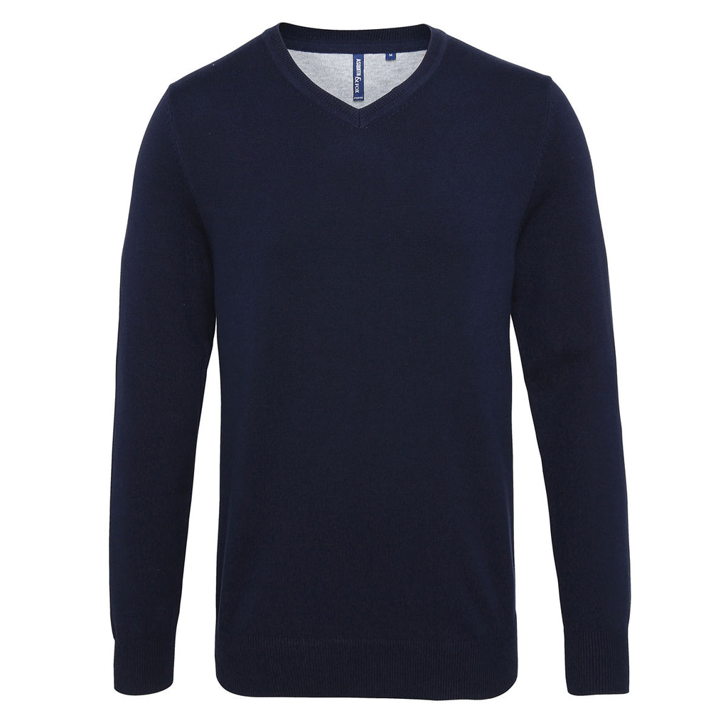Add your company logo to something your employees and clients will enjoy wearing at the office and beyond. The Asquith & Fox Men's French Navy Cotton Blend V-Neck Sweater has a versatile design that allows it to be worn with a shirt and tie underneath for a more formal look or without either for a more casual, everyday style. It has a sleek design that is ideal for custom decoration plus details like ribbing on the neckline and cuffs and tuck stitching that lend the sweater a polished look. It makes a fashionable corporate gift item sure to turn heads.