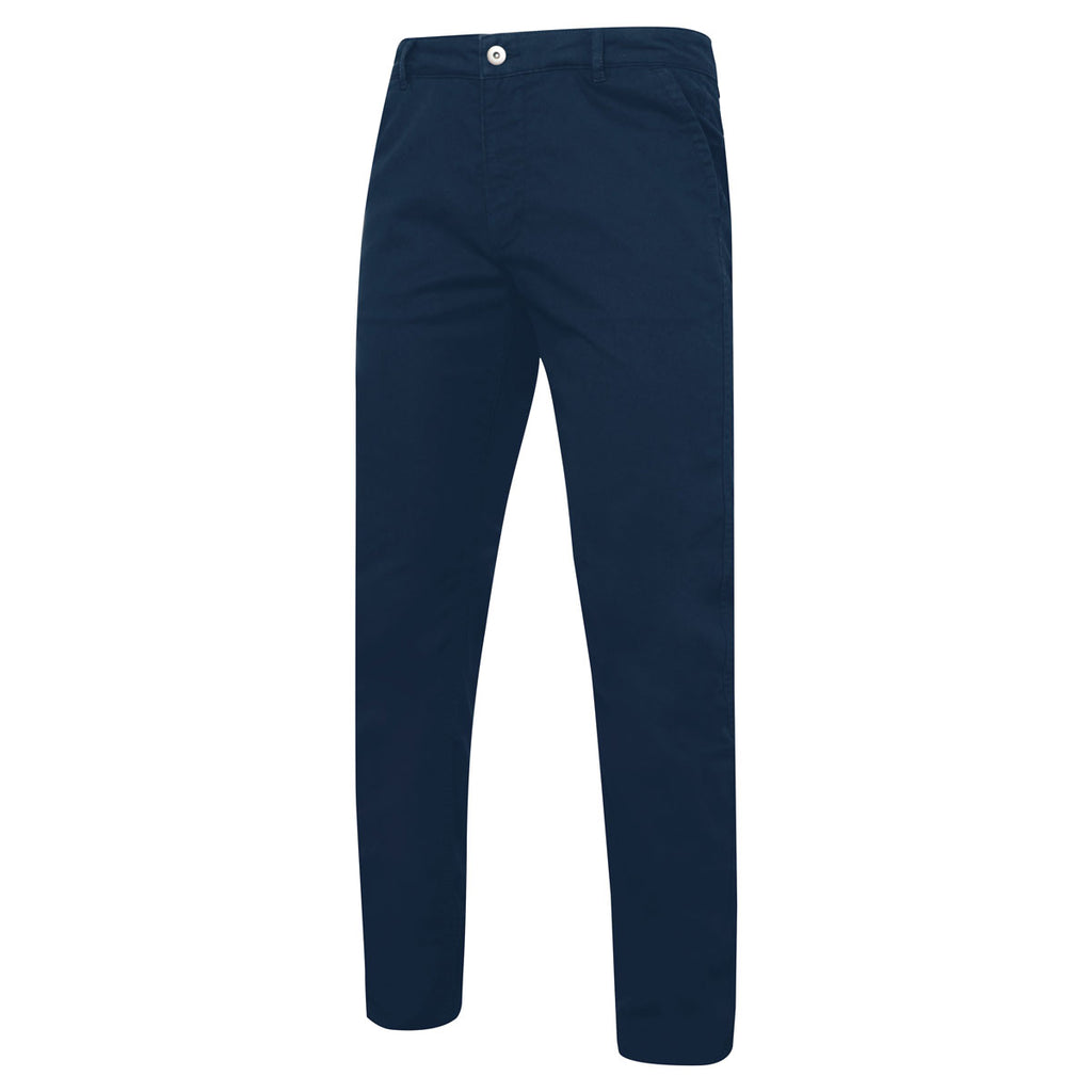 No matter the occasion, the Asquith & Fox Men's Navy Slim Fit Cotton Chino fit in (and fit well). Made with high-quality construction and attention to detail, these pants are tailored but have a slight stretch and can be custom decorated with a company logo. They are an ideal choice for employee uniforms at retail stores, hotels, golf resorts, and restaurants. Pair with a dress shirt for a smart, polished look or with a polo shirt for a more relaxed and comfortable style.