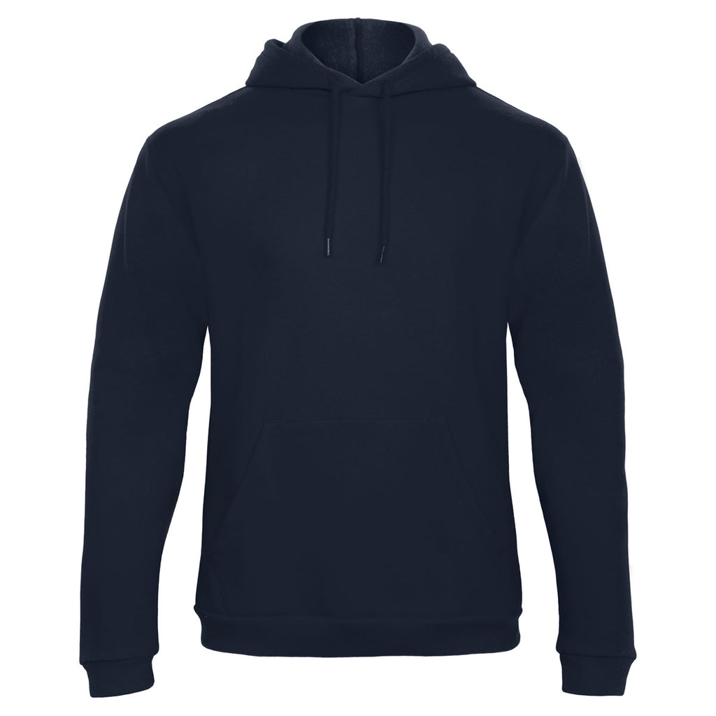 The B&C Men's Navy ID.203 50/50 Sweatshirt offers a blank canvas to adorn with your custom corporate logo. Everyone loves a simple hoodie and this sweatshirt is no exception with its kangaroo pockets and brushed fleece inside for added comfort and warmth. The sweatshirt is tough and will easily resist both tear and the cold - and with the hood, you have for yourself, an item, that when logoed, will certainly drive in through some traffic.