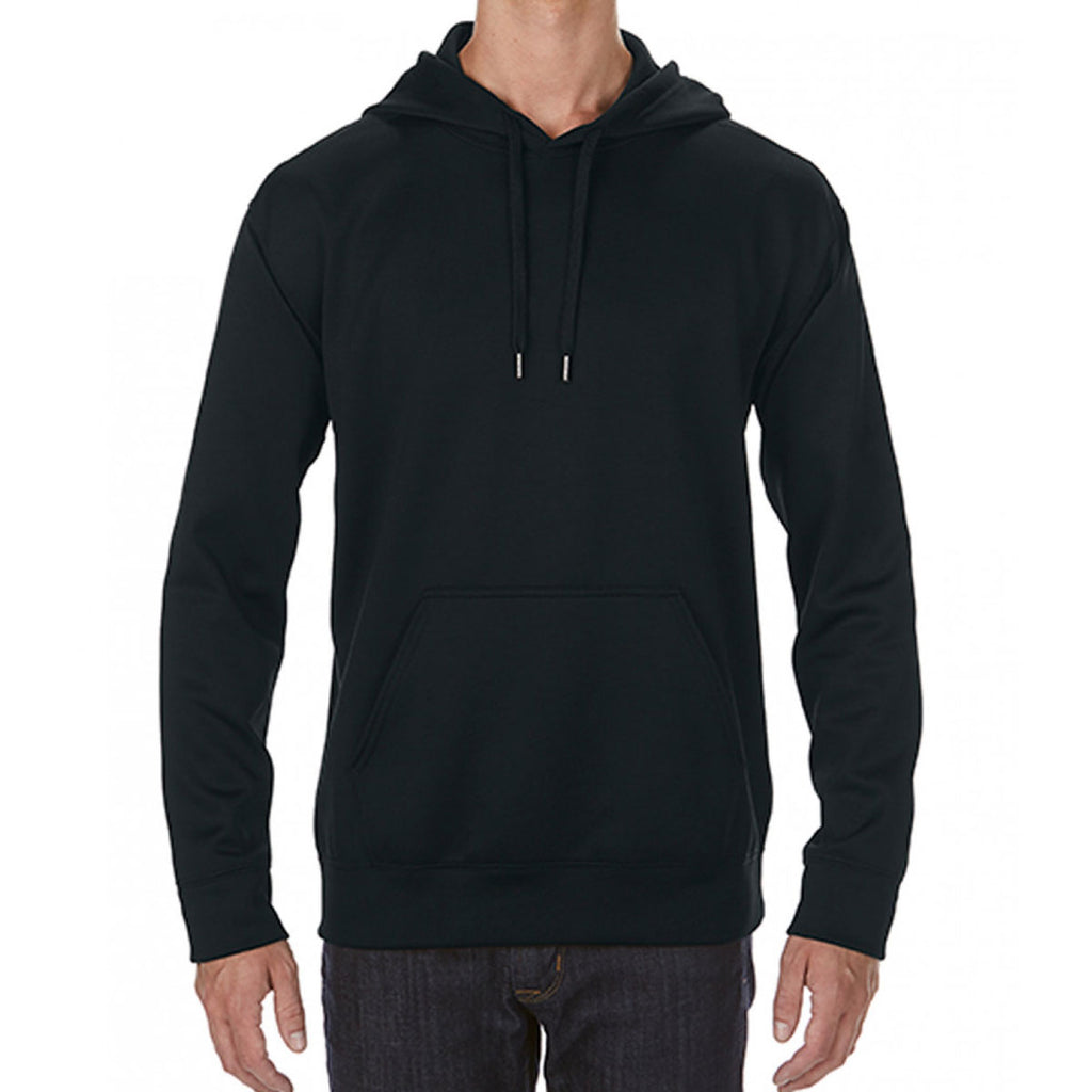 Hugely versatile and super soft to the touch, the Gildan Men's Black Performance Tech Hooded Sweatshirt is guaranteed to provide premium comfort and warmth at all times. Made using brushed-back fleece material, this sweatshirt features a handy front pouch pocket, a three-panel hood and rolled forward shoulders to achieve a fit of ultimate comfort. Better still, moisture wicking fabric has been used within the inner lining of this sweatshirt to keep the wearer feeling cool and dry at all times. Giving you the chance to add your very own custom logo too, creating a bespoke range of personalised sweatshirts has never been easier.