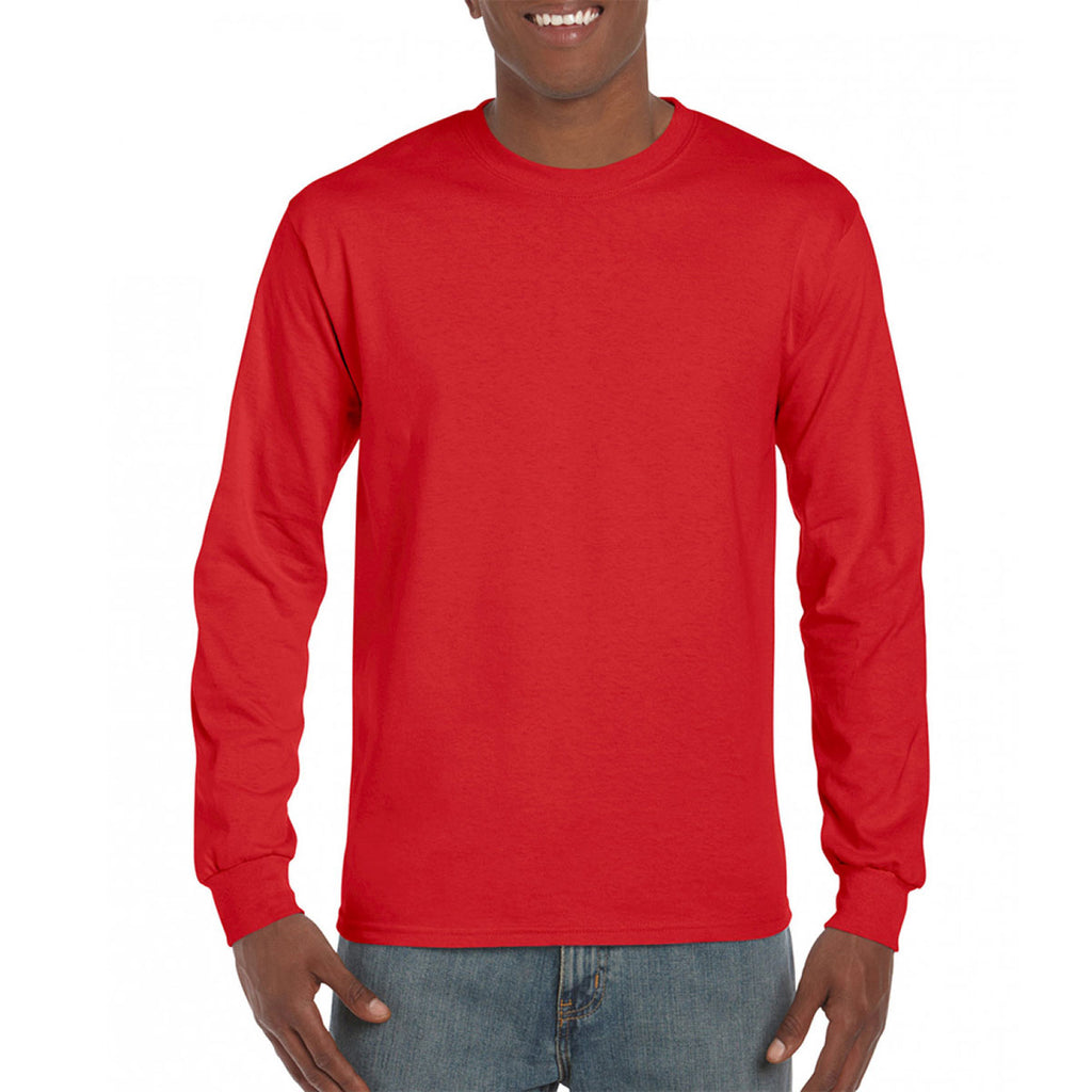 Offering a thicker material than a standard shirt without the bulkiness of a sweater, the Gildan Men's Sport Scarlet Red Hammer Heavyweight Long Sleeve T-Shirt provides the perfect balance. Superbly comfortable without compromising on style, this customisable shirt has been made using 100% ringspun combed cotton to achieve its robust durability. Also featuring a ribbed collar and cuffs in addition to a taped neck and shoulders for added structure, there's plenty of free space amongst this shirt for you to add your very own custom logo for instant personalisation.
